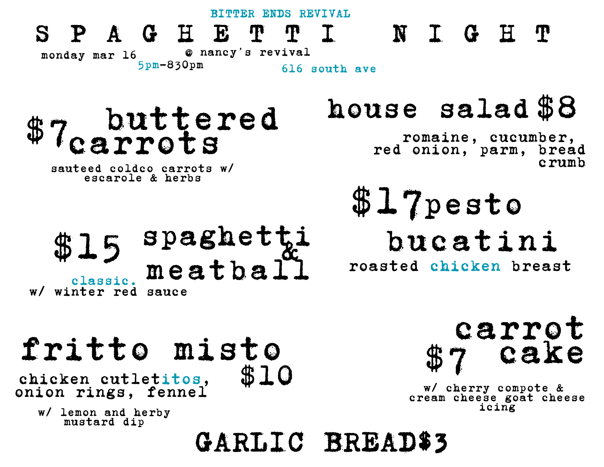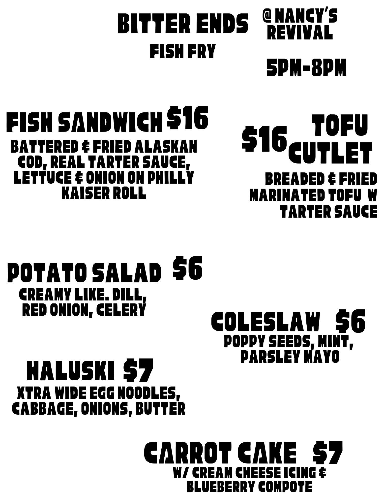 Join us for casual dining, monday nights at Nancy’s Revival in Wilkinsburg. 5pm-9pm
